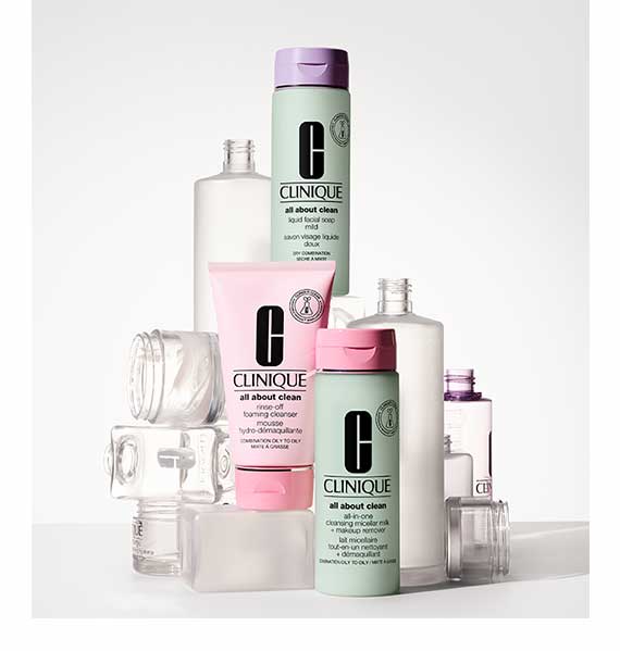 In 2020, we took our first steps towards more sustainable packaging with our All About Clean cleansers. These products are now in bottles that contain a percentage of plant-derived plastic and/or post-consumer recycled (PCR) material, reducing our use of fossil-fueled plastic on a per-product basis.